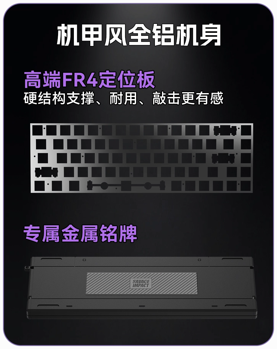| 内部填充 | 铝合金FR4定位板 + Poron静音棉 Epdm静音棉 + 减震眭胶条 |