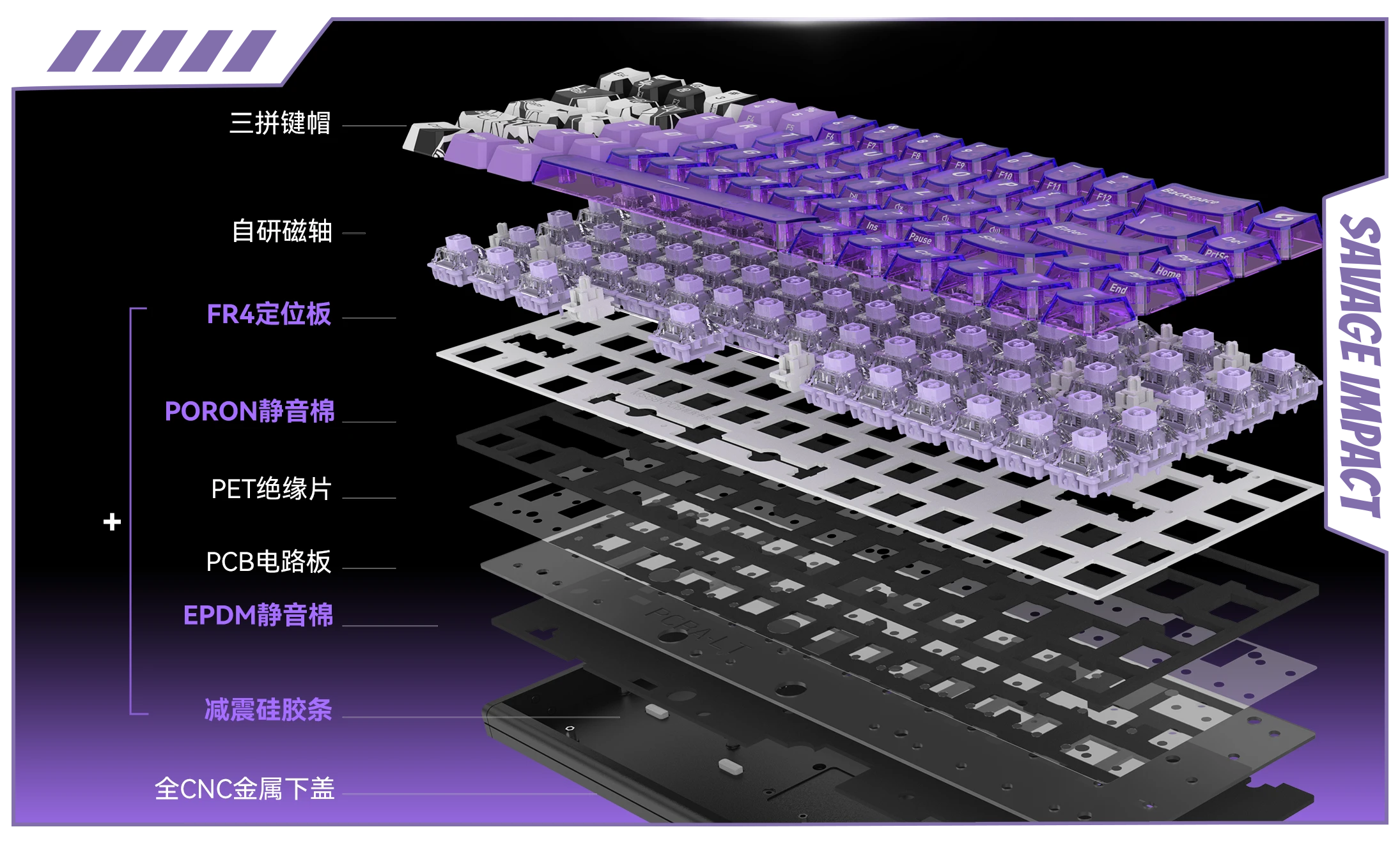 旗舰级全规格填充,有效吸收多余震动与杂音,让每一次敲击都更干净利落。
