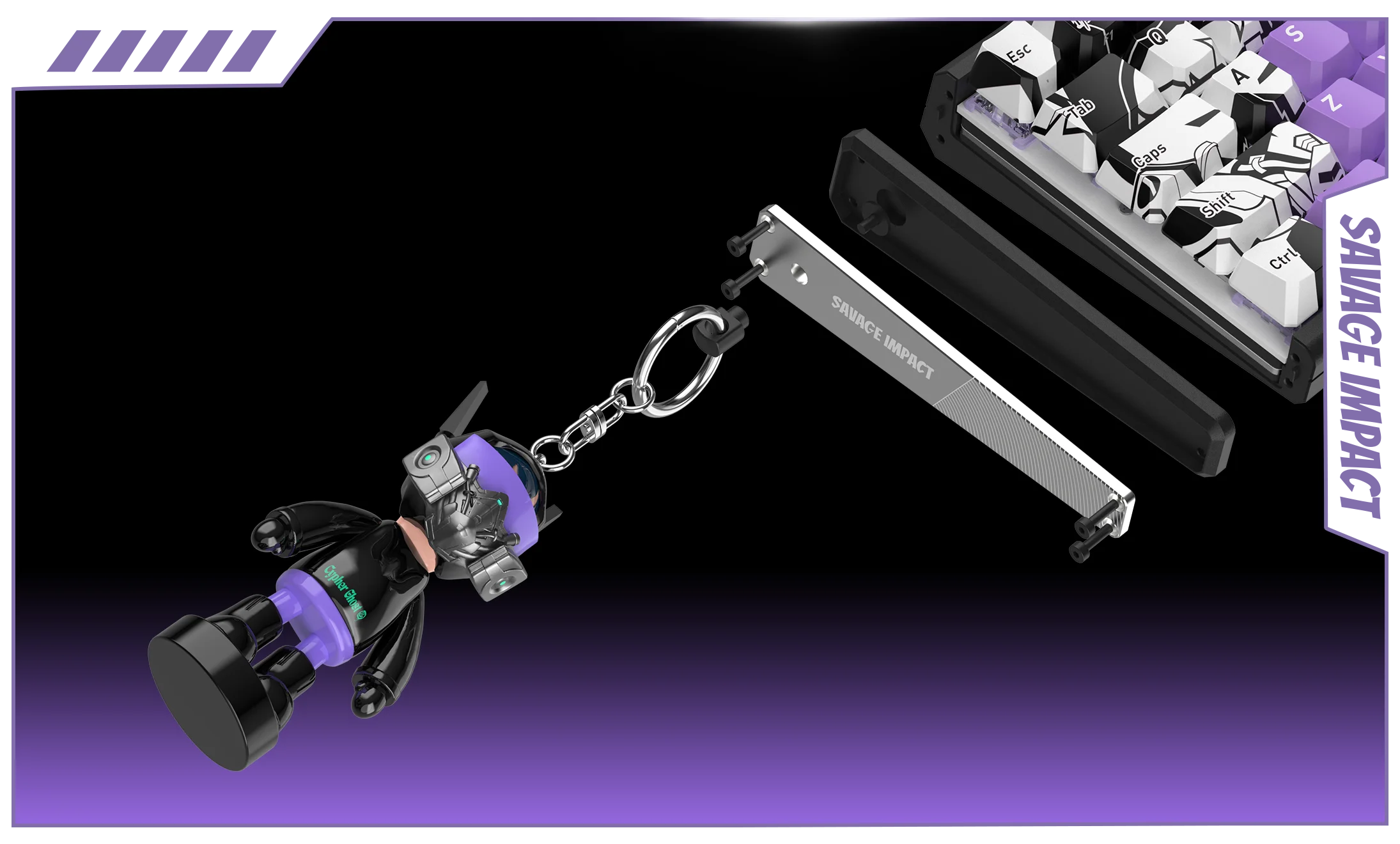 ④赠雾透键帽*21颗 ⑤硬核键盘侧裙*2 ⑥二合一螺丝刀*1